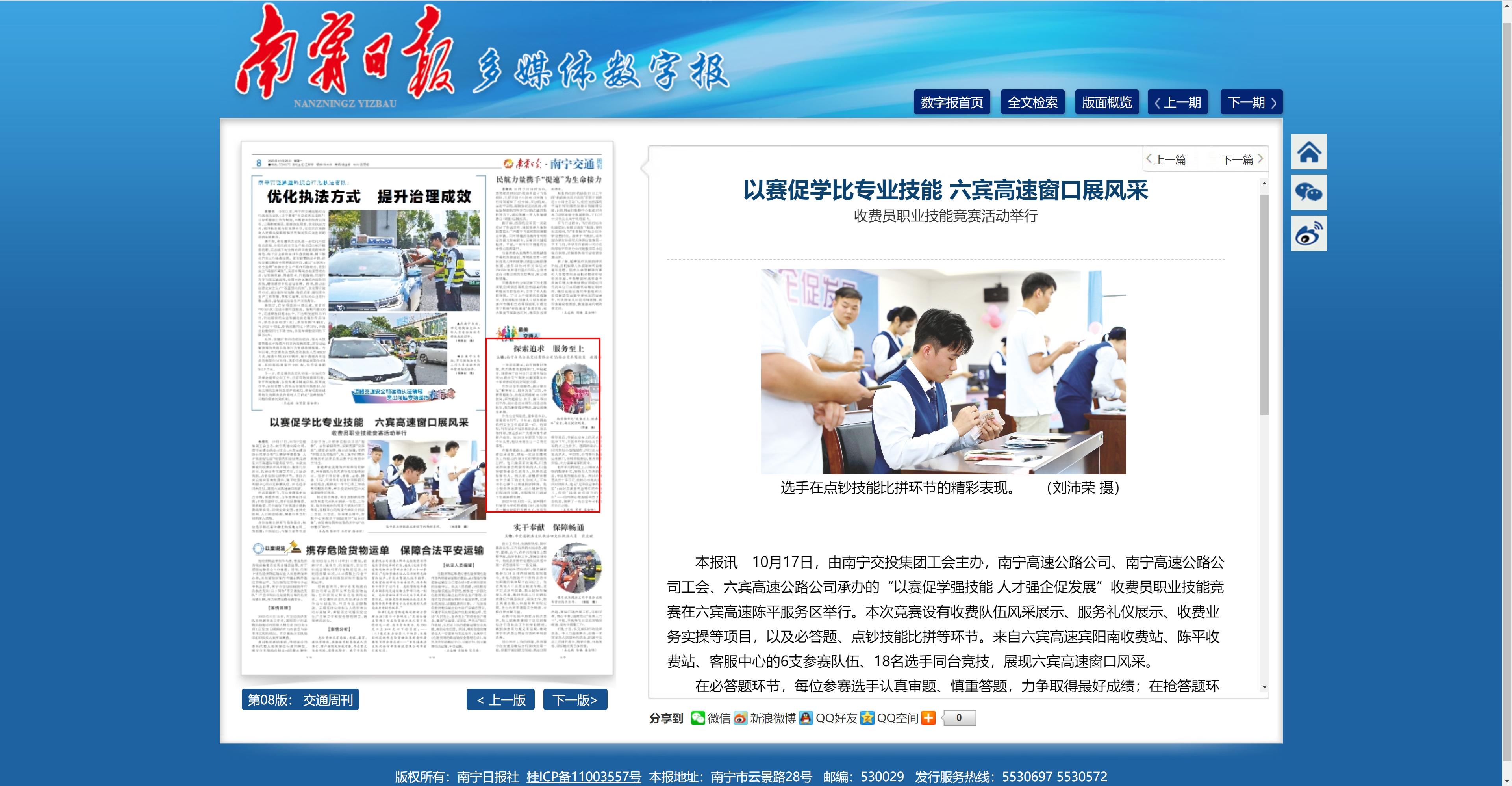 以賽促學比專業(yè)技能 六賓高速窗口展風采 收費員職業(yè)技能競賽活動舉行