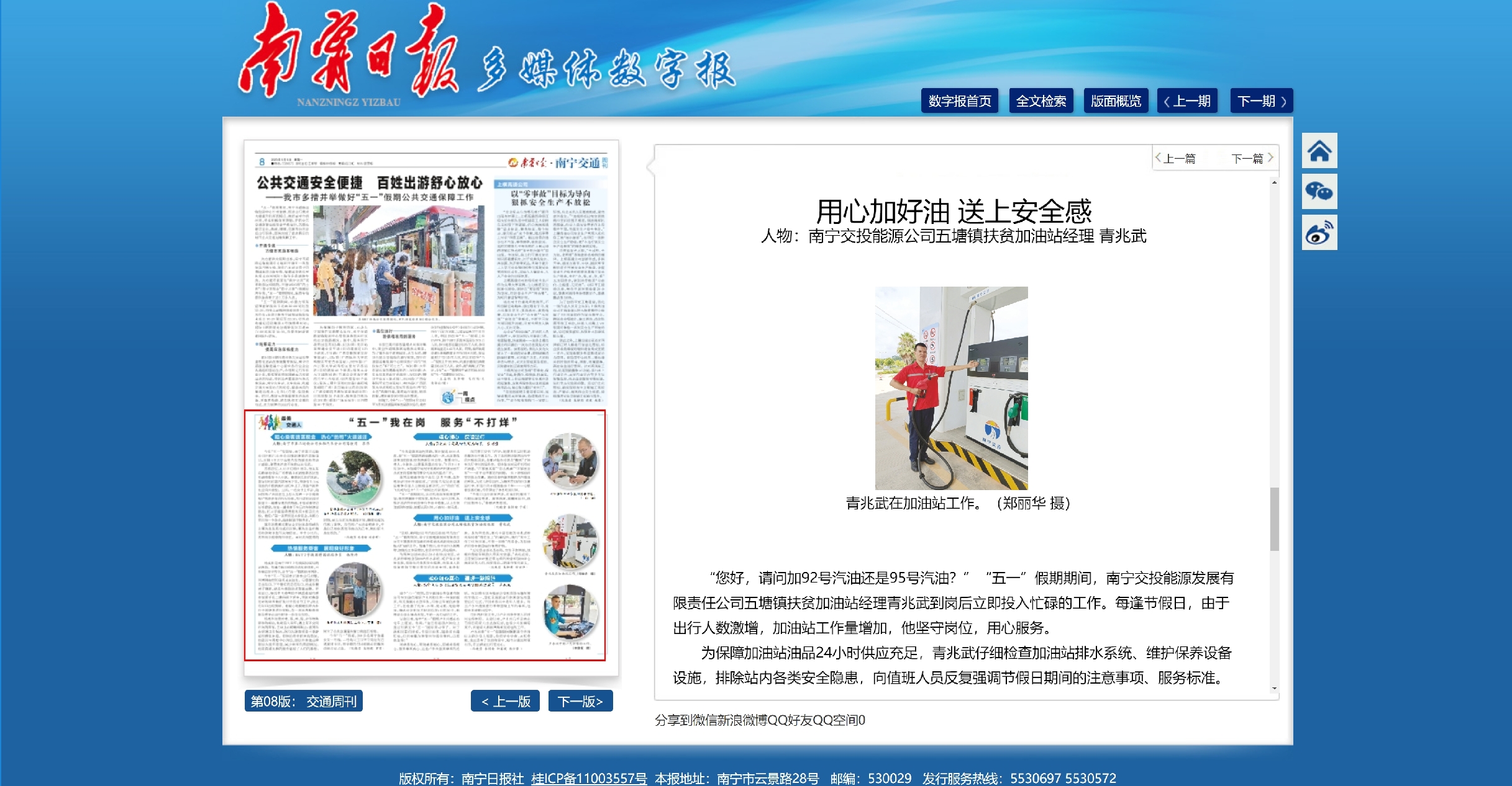 “五一”我在崗 服務(wù)“不打烊” 用心加好油 送上安全感 人物:南寧交投能源公司五塘鎮(zhèn)扶貧加油站經(jīng)理 青兆武